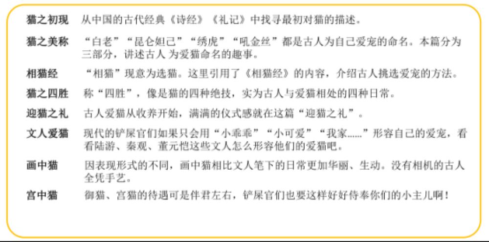 首先,内容上篇篇都是精选,手帐中的文字分8个主题叙讲古人与猫的奇闻趣事,看完基本就可以掌握猫们的前世今生,站上历史和文化的双重高地。