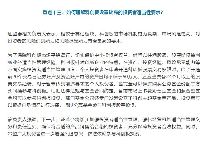 15,证监会将切实加强投资者适当性管理,强化经营机构适当性管理义务和责任追究,确保将合适的产品销售给合格的投资者;