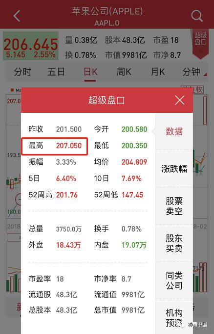 8月2日,苹果给出最终答案!苹果盘中涨幅一度接近3%,股价创下207.05美元的历史高价,市值成功突破万亿美元,成为美股也是全球首个市场突破万亿美元的公司。(早在2007年,中石油上市之际,其市值也曾突破万亿美元,不过是由A股市场累加H股市值。)