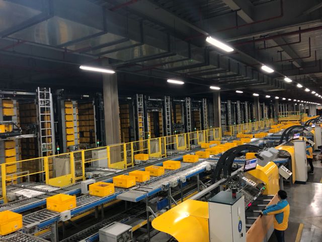 11日凌晨,苏宁物流79个大小件中心仓,连同天天快递全国100多个分拨中心,超10万名物流人员,连夜投入到双十一订单分拣和发货工作中。
