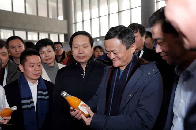 ↑1月10日,阿里巴巴技术脱贫大会在河北举行。阿里巴巴脱贫基金主席、阿里巴巴董事局主席马云试喝生态脱贫产品“MA沙棘”,这是来自蚂蚁森林上线的首个生态经济林。