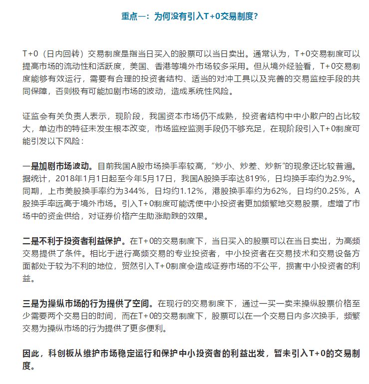 科创板开市锣声渐行渐近,为何没有引入“T+0”交易制度?如何提高发行定价合理性?注册制下证监会与交易所职能定位如何划分?