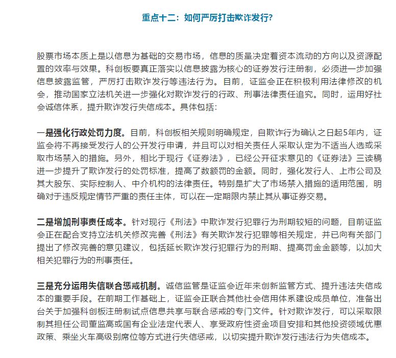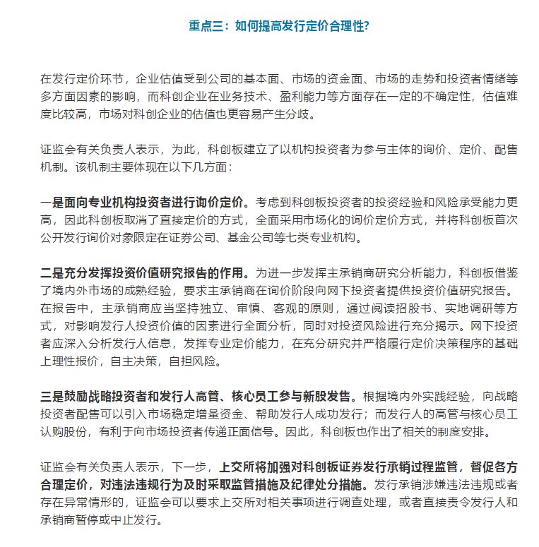 11,上交所将加强对科创板证券发行承销过程监管,督促各方合理定价,对违法违规行为及时采取监管措施及纪律处分措施;