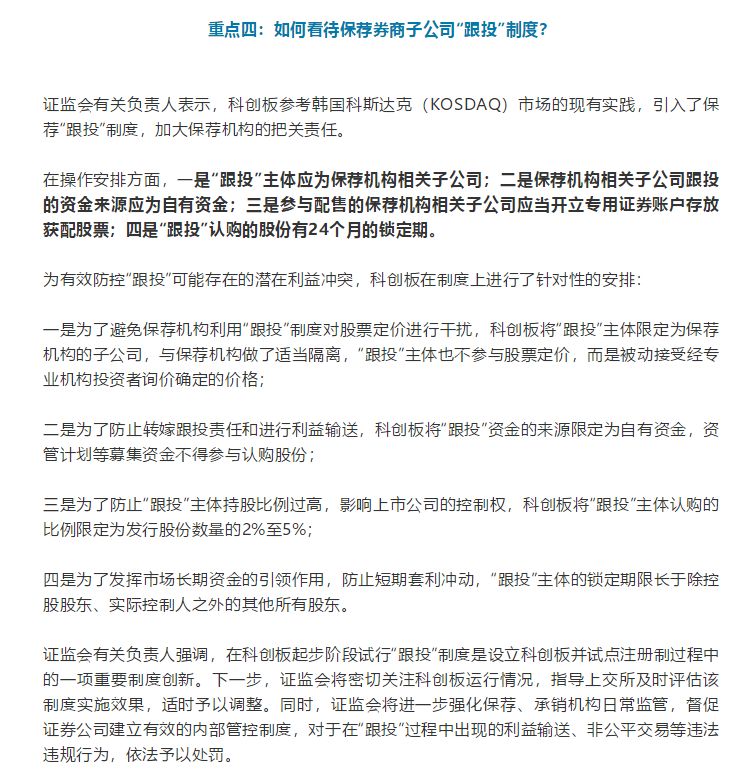 8,证监会将密切关注科创板运行情况,指导上交所及时评估保荐跟投制度实施效果,适时予以调整;