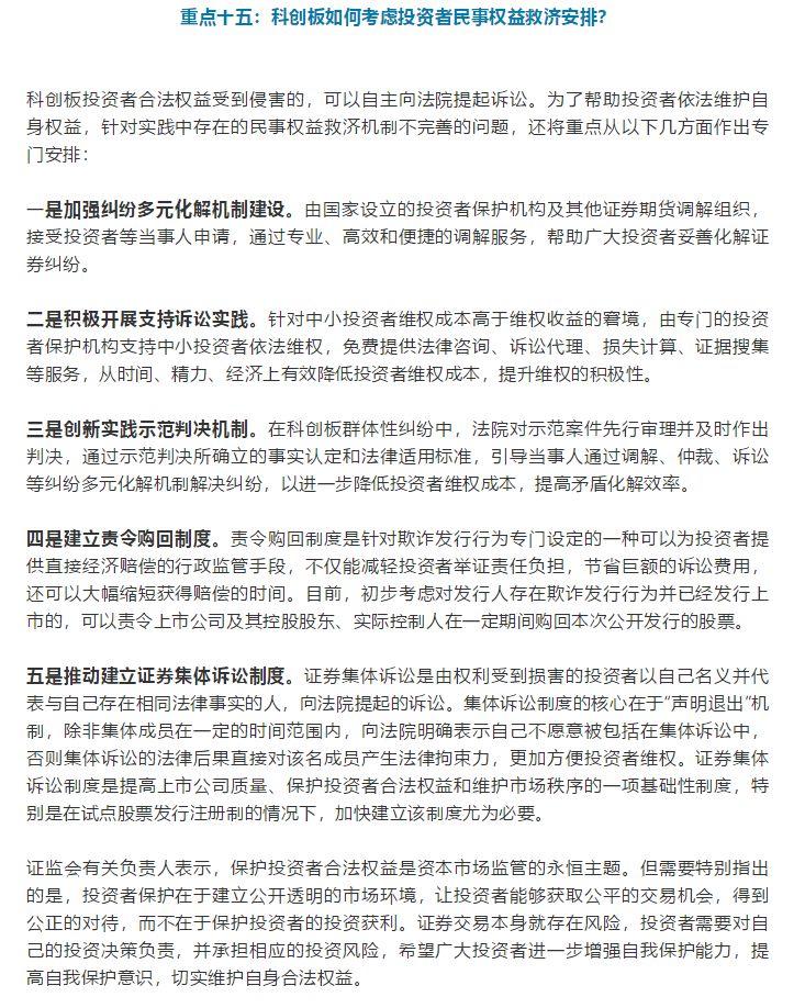 15,证监会将切实加强投资者适当性管理,强化经营机构适当性管理义务和责任追究,确保将合适的产品销售给合格的投资者;