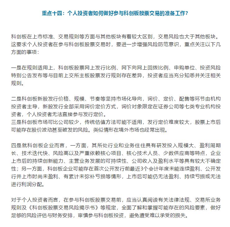 16,个人投资者要做好足够的风险评估与财务安排,审慎参与科创板投资,避免遭受难以承受的损失。