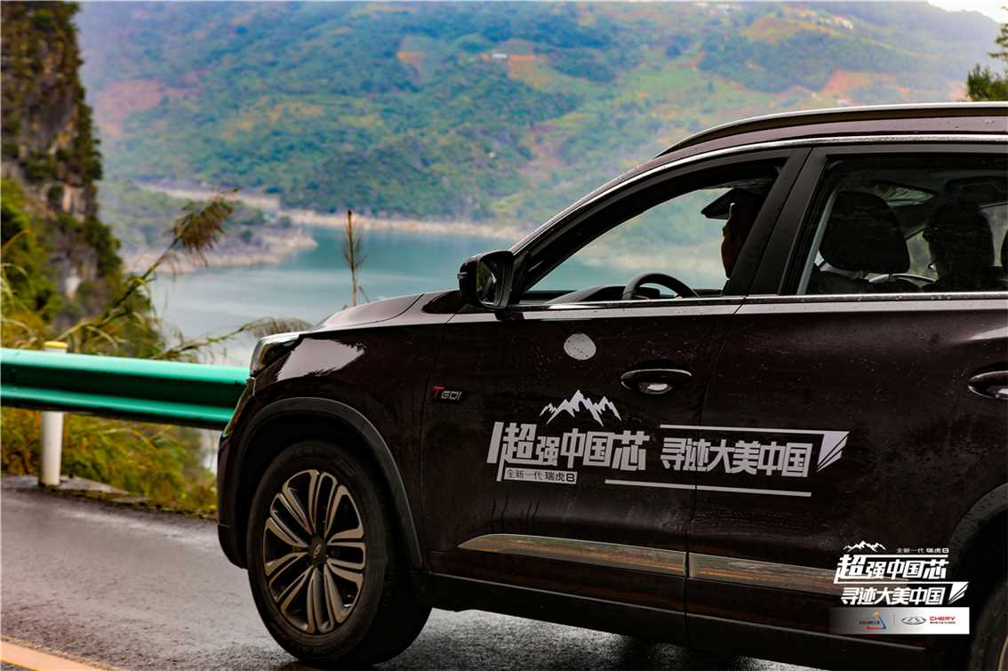 山峦叠嶂,云雾漫漫,全新一代瑞虎8与远处山峰互相衬映,勾勒出一副层次分明的“峰”景美图。