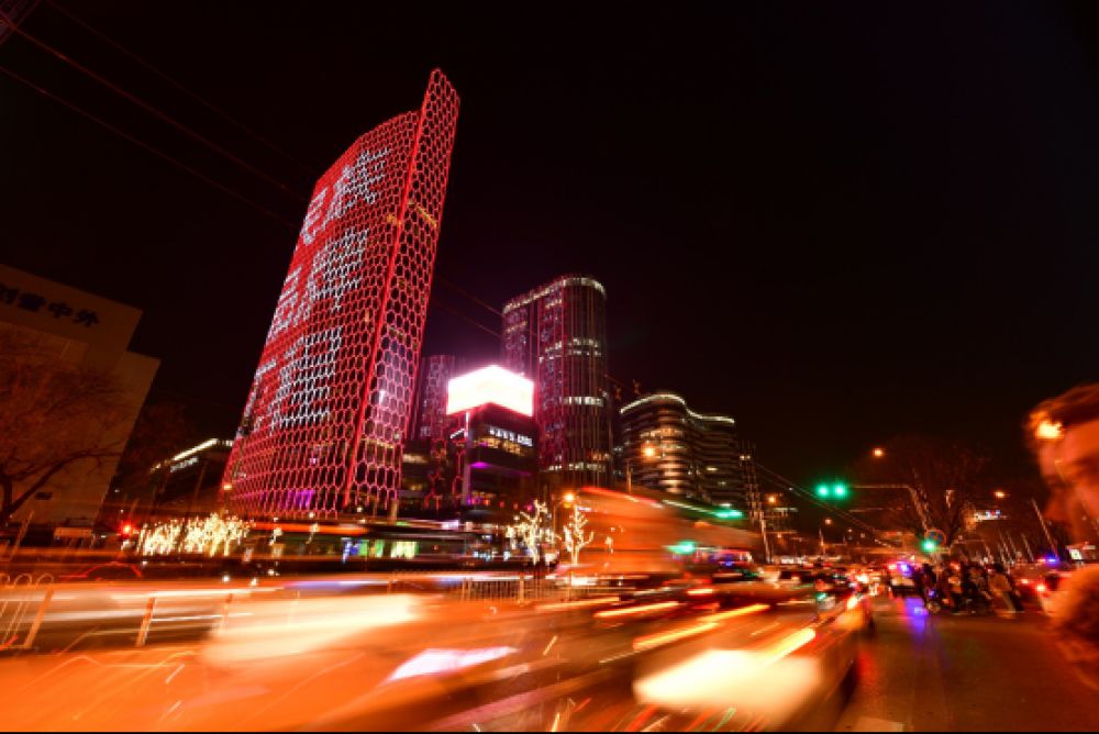↑12月31日晚,“品牌之光耀未来”灯光秀亮相北京三里屯。