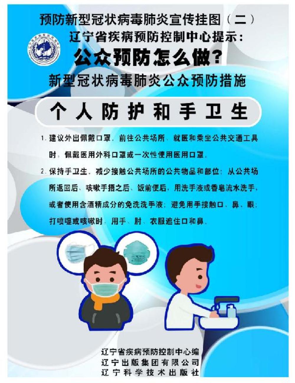 面对疫情,在辽宁省委宣传部、辽宁省卫生健康委员会倡导下,辽宁出版集团快速响应,全力以赴,第一时间策划安排集团所属辽宁科学技术出版社组织辽宁省疾病控制中心专业人员紧急编写,并出版发行《预防新型冠状病毒肺炎宣传手册》及宣传挂图,手册及挂图的电子书也同步面世。