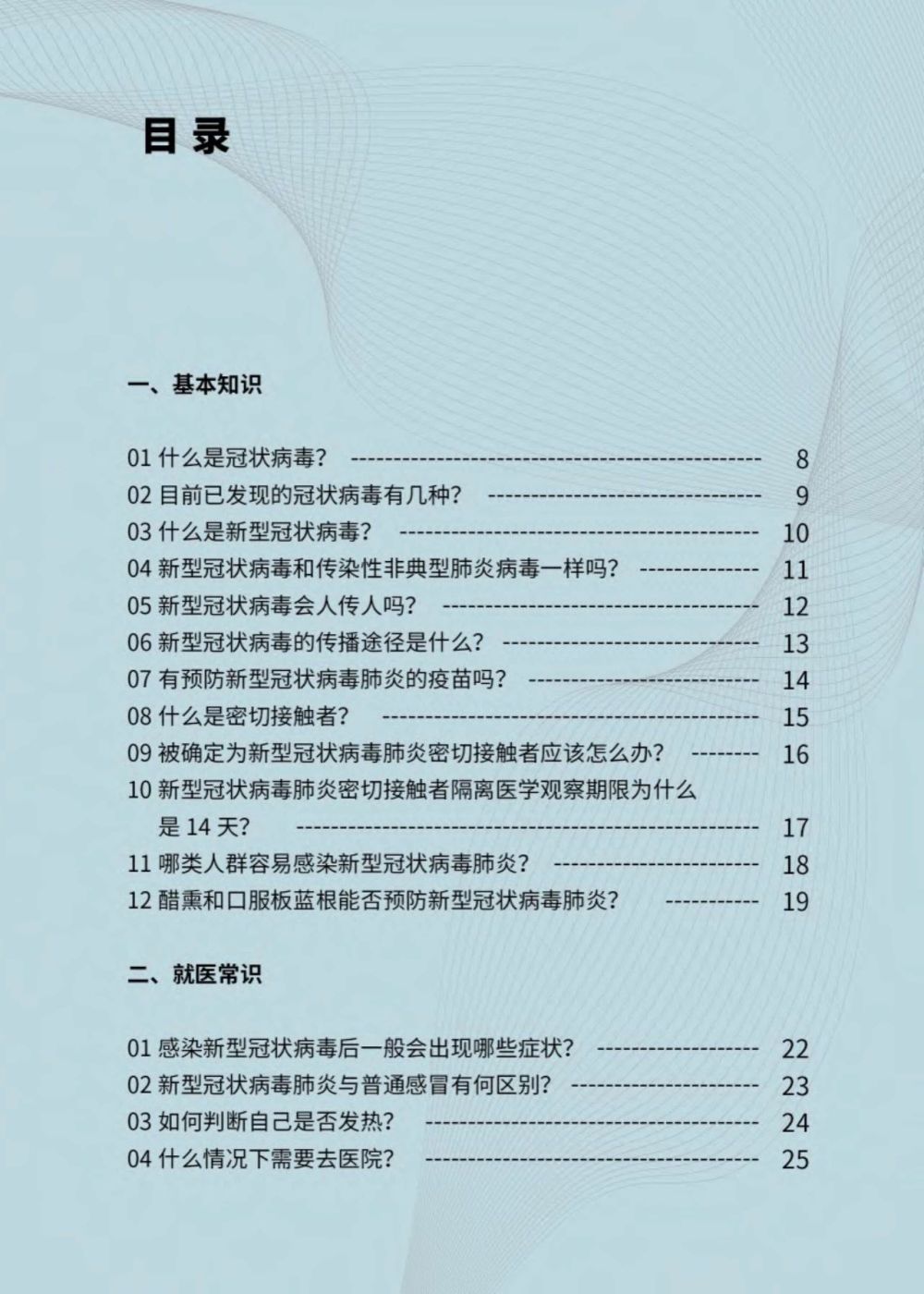 宣传手册图文并茂、通俗易懂,以问答的形式解读了与新型冠状病毒肺炎有关的专业问题和民众疑惑,既包含国家和辽宁省防控宏观政策,又注重解答预防工作中公众关切的问题,是现阶段急需的新型冠状病毒肺炎预防的普及读本。