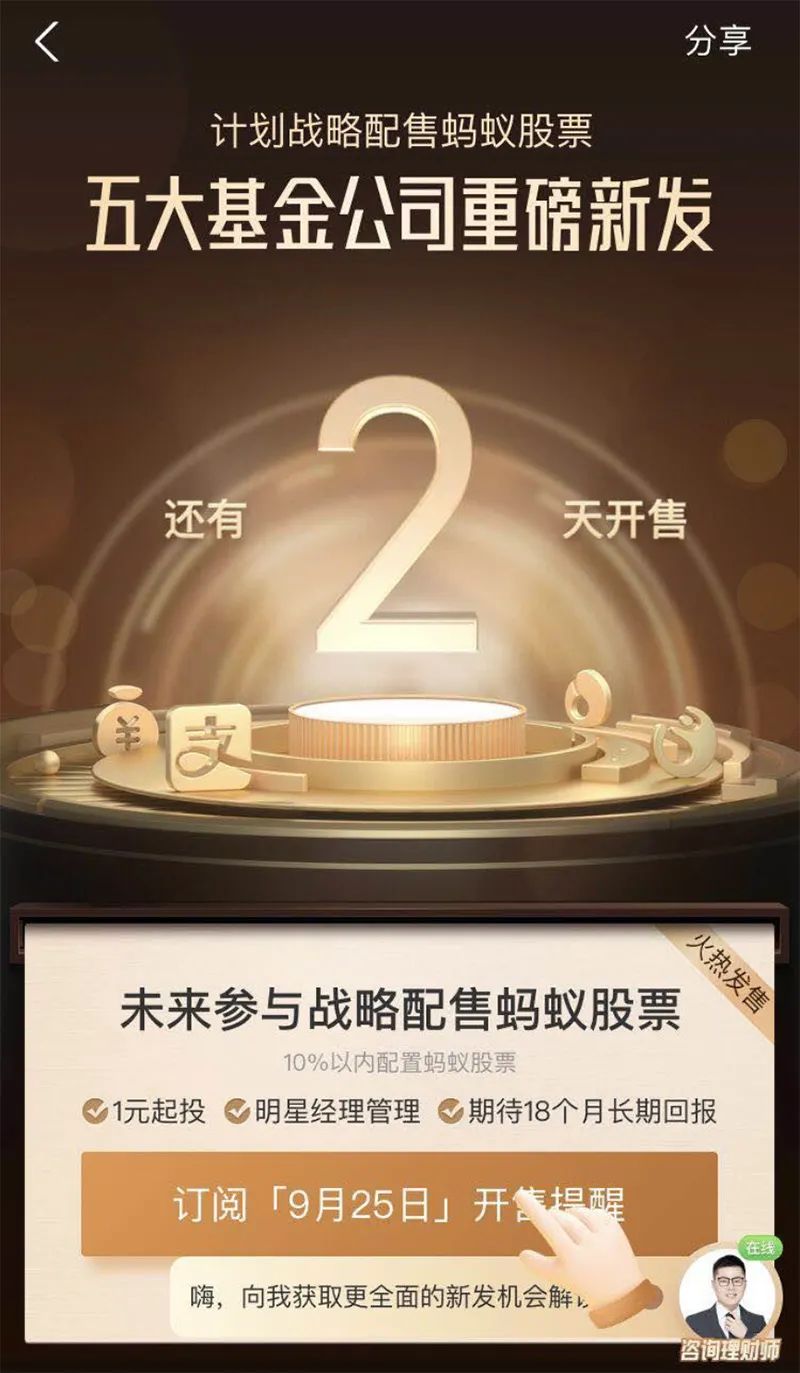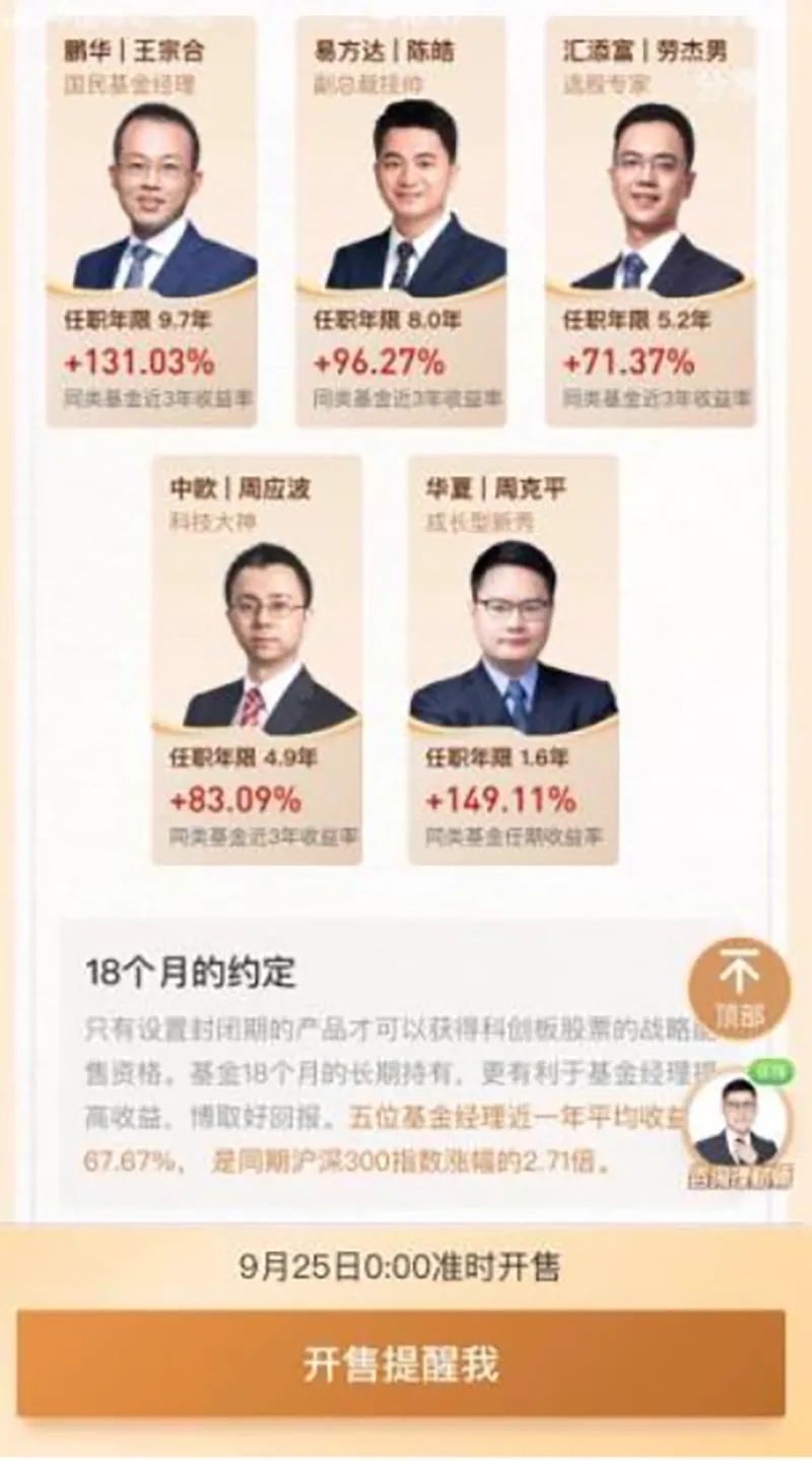从发售公告来看,该基金可投资范围包括科创板、港股通标的、股票期权、股指期货、国债期货等金融衍生品等,并且可以参与战略配售股票,封闭期为18个月。基金公司相关人士表示,该批基金可参与即将在科创板上市的蚂蚁集团的战略配售。