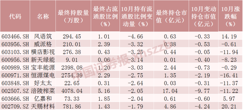从持有流通股比例情况来看,Choice数据显示,10月北向资金对49只个股的持有流通股比例减少1个百分点以上,对风语筑、威派格、横店影视的持有流通股比例减少居前,分别减少4.66、3.32、3.25个百分点。