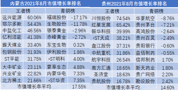 以市值增长率为主要排行指标,从不同地区、行业、市值规模等多个维度进行横向和纵向比较,详情如下: