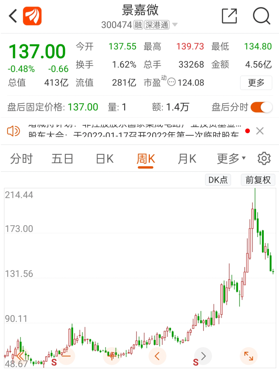 无独有偶,1月10日晚间,另一只芯片股景嘉微也披露了减持公告,股东国家集成电路产业投资基金股份有限公司(简称“国家集成电路基金”)计划在本公告披露之日起15个交易日后的6个月内以集中竞价交易方式减持公司股份不超过602.48万股,即不超过公司总股本比例的2%。
