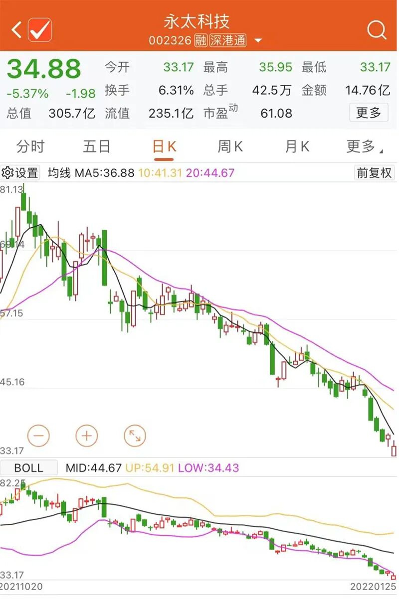 今日早盘,永太科技以跌停价开盘,随后杀跌情绪有所回暖,截至午间收盘报34.88元/股,下跌5.37%。