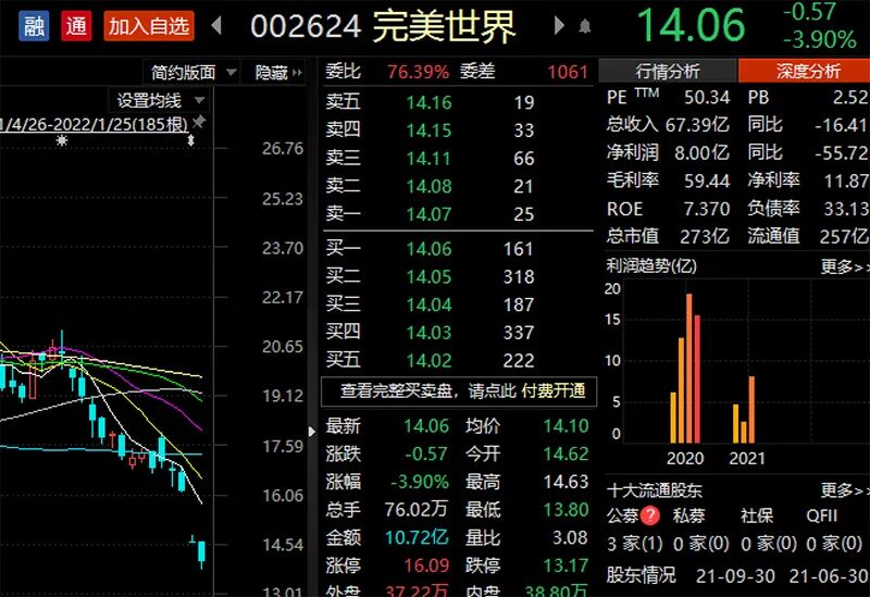 业绩公告一出,完美世界股价应声下跌,昨日盘中封住跌停,今日早盘再度回撤逾3%。