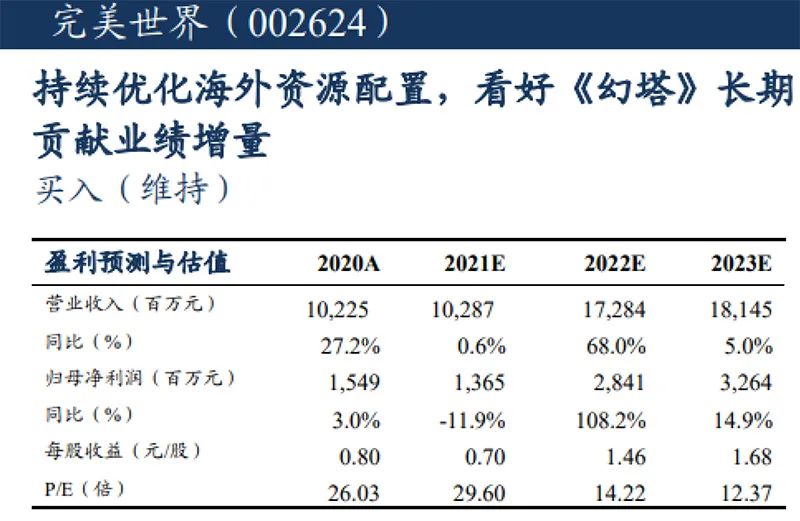 据上证报不完全统计,此前37家券商推荐完美世界并给出盈利预测,这些券商对完美世界2021年归母净利润的一致预测值(即算术平均数)为13.95亿元,最低的预测是12亿元。也就是说,完美世界2021年实际净利润仅为券商一致预测的零头。
