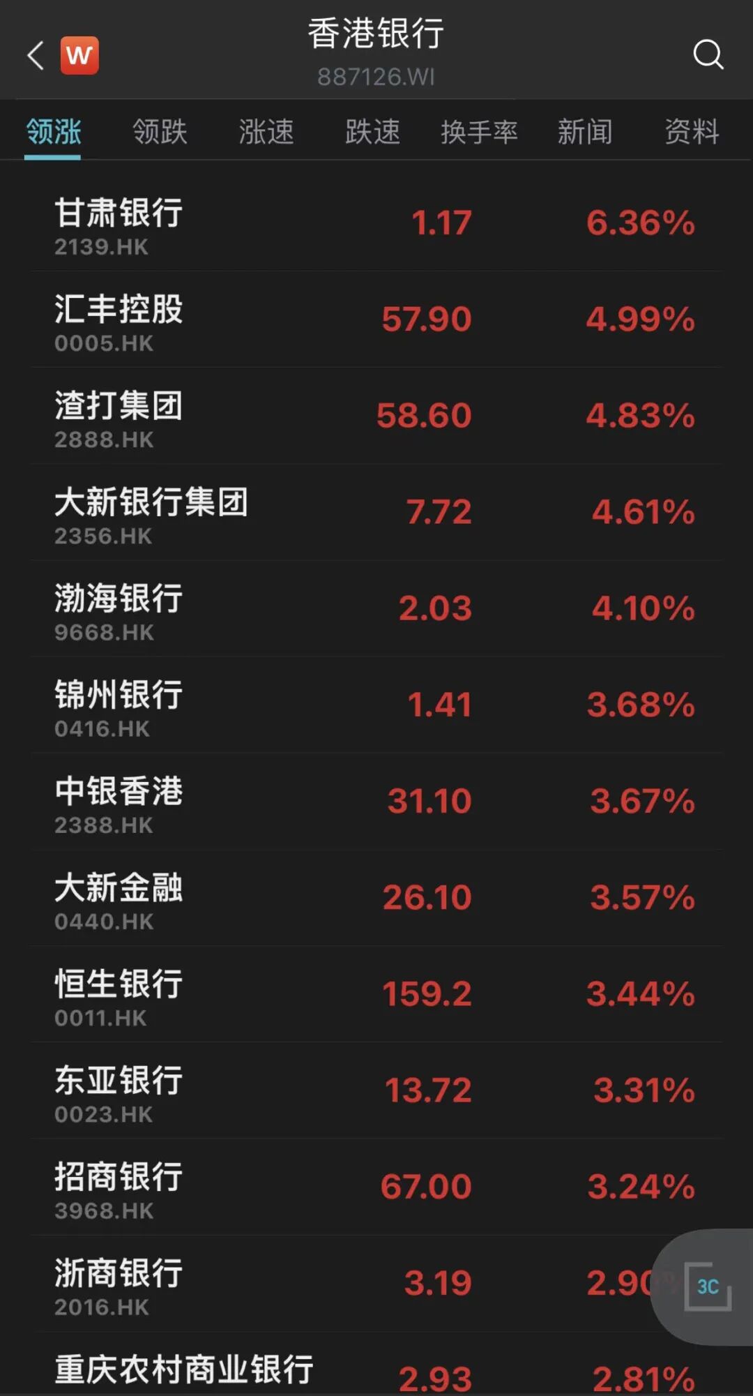 此外,渣打集团和汇丰控股涨幅均近5%,大新银行集团涨逾4%。