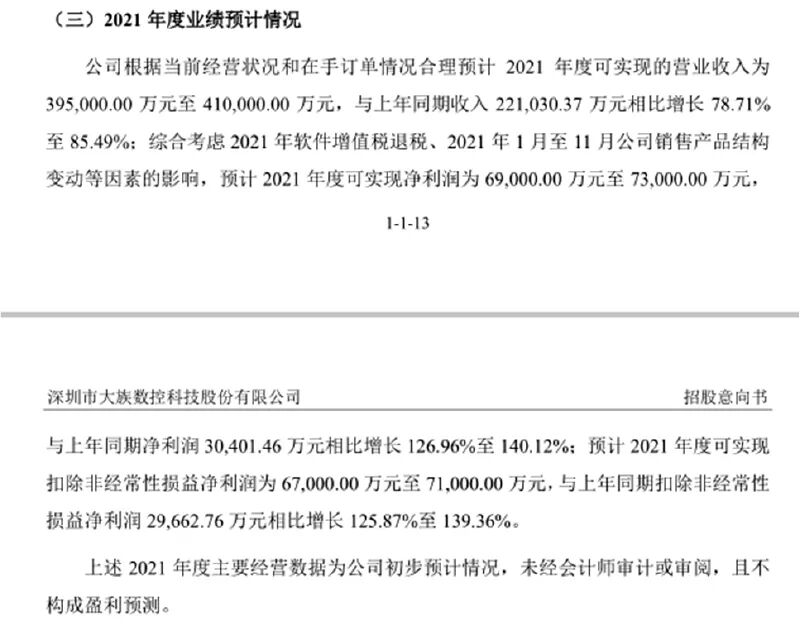 大族数控预计2021年净利润为6.9亿元至7.3亿元,较上年同比增长126.96%至140.12%。大族数控表示,随着5G通信网络升级和大数据的进一步发展,带动PCB行业需求快速增长,下游PCB制造商积极增加对PCB专用设备的资本性开支,公司在PCB专用设备行业具有领先的行业地位,设备的销量快速增长。