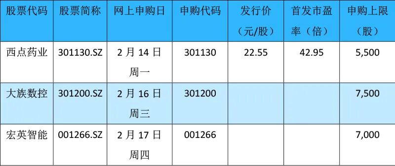 据目前安排,若无变化,下周(2月14日至18日)将有3只新股可申购,包括创业板2只、深市主板1只。