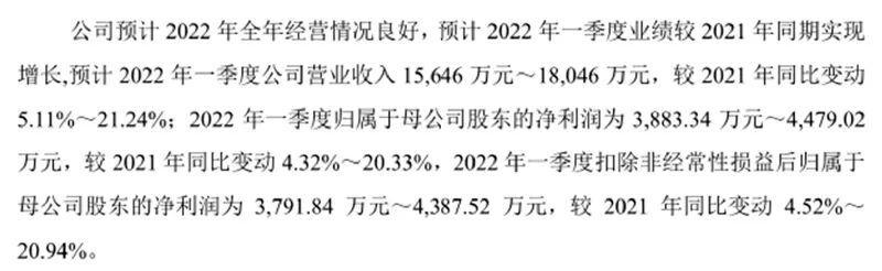 宏英智能预计2022年一季度净利润为3883.34万元至4479.02万元,较上年同比增长4.32%至20.33%。