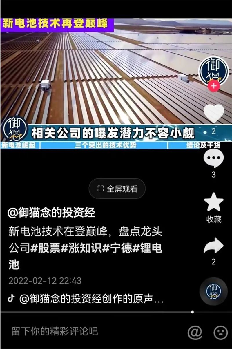 记者在抖音APP中搜索“东方能源”关键词,发现在2月12日前后,有不少账号集中推荐投资者关注东方能源股票。其中,公司与“铁铬液流电池”的关系被多次提及。