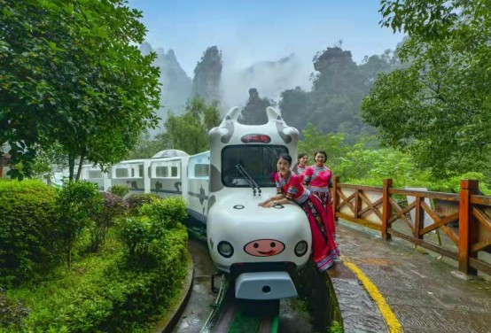 作为全球首条运行在张家界“峰林地貌”中的观光电车,十里画廊观光电车在游客运输、旅游观光方面发挥着重要作用,穿行在峡谷中的观光电车本身也成为了景区的一道风景线。