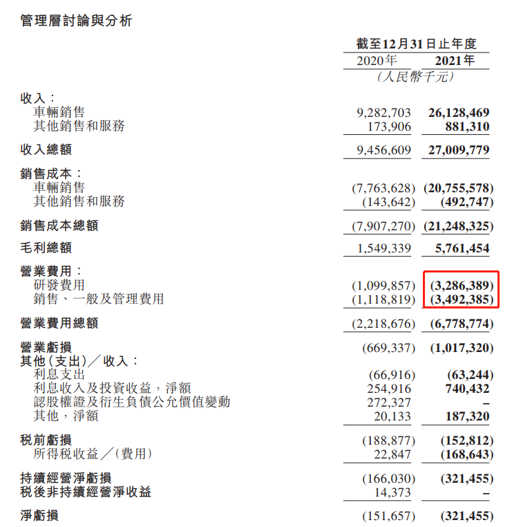 财报上说,2021年的研发费用主要用于研发人员的薪酬和新车型的研发活动。