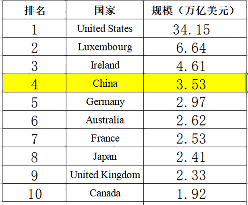 中国公募基金坐稳全球第四宝座