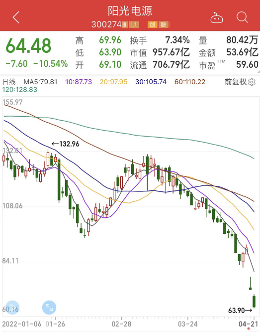个股方面,阳光电源连续两个交易日大跌成为市场关注热点。截至4月21日收盘,阳光电源当日下跌10.54%,算上4月20日的20%跌幅,阳光电源在近两个交易日内跌超30%,市值蒸发超300亿元。