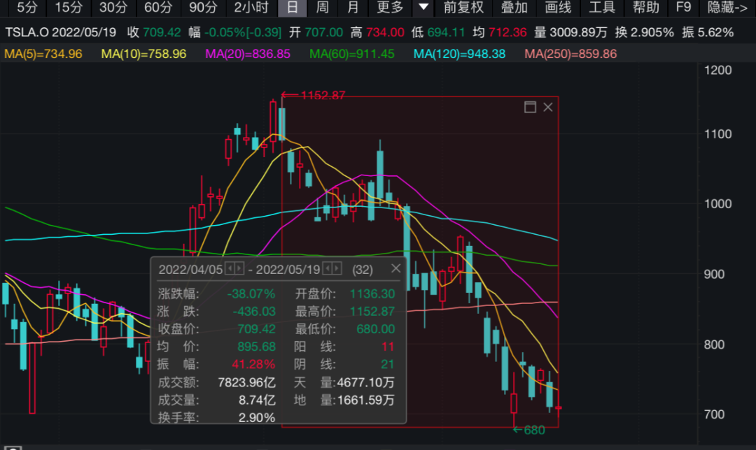 事实上,在Dan Ives下调特斯拉目标价之前,特斯拉股价已经跌跌不休。