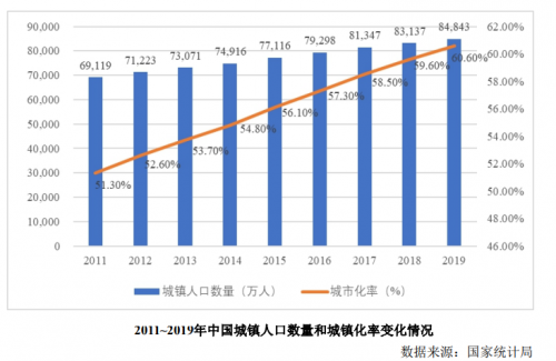 美国著名经济学家、诺贝尔经济学奖获得者斯蒂格利茨曾表示:“21世纪影响世界经济的有两件事,一是美国的新技术革命,二是中国的城镇化”。上世纪80年代以来,我国城镇人口比重(城镇化率)逐年增高,2019年达到60.6%。