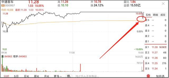 值得一提的是,近期涨幅高达170%的“妖王”中通客车,股价在尾盘跳水后迅速拉回,实现10连板。