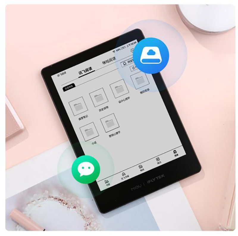 科大讯飞电子书阅读器R1支持微信公众号、网易、头条等新闻内容的收藏,支持百度网盘、OneDrive等网盘内容,支持导入PDF、EPUB、MOBI、TXT等常见电子格式文件。