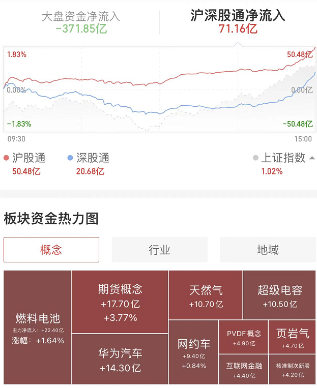 总体上,个股跌多涨少,两市超2500只个股下跌。沪深两市今日成交额10994亿元,较上个交易日放量84亿元。北向资金重新流入A股市场,全天净买入71.16亿元。