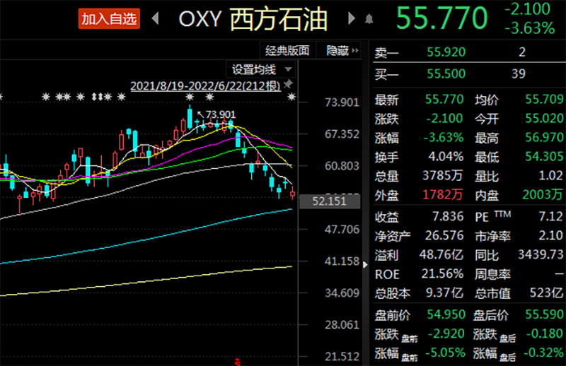 然而,6月以来,伴随大宗商品市场回调,西方石油股价大幅下挫超19%。有机构测算,如果巴菲特3月以来持股不动,则可能面临账面亏损。