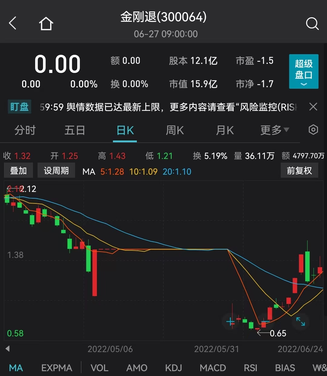 Wind数据显示,截至6月24日,上述4家公司仅有金刚退一家公司的股价超过1元,其余均不足1元,其中最低的为晨鑫退,最后股价只有0.19元。此外,退市时4家公司每股净资产也均不足1元,最高的绿景退也只有0.83元,而金刚退与猛狮退则资不抵债,每股净资产分别为-0.77元和-0.02元。