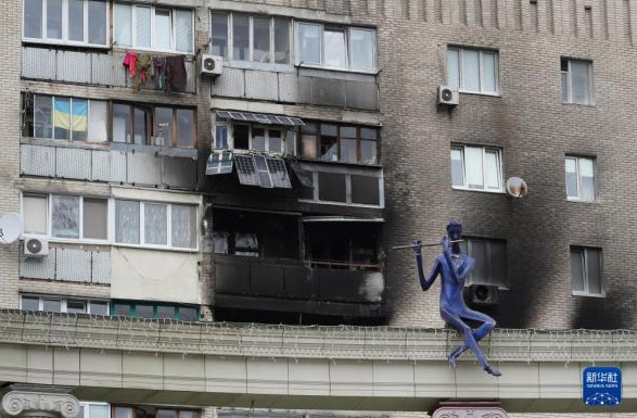 这是5月31日在乌克兰基辅州伊尔平市中心拍摄的一座受损的居民楼。来源:新华社