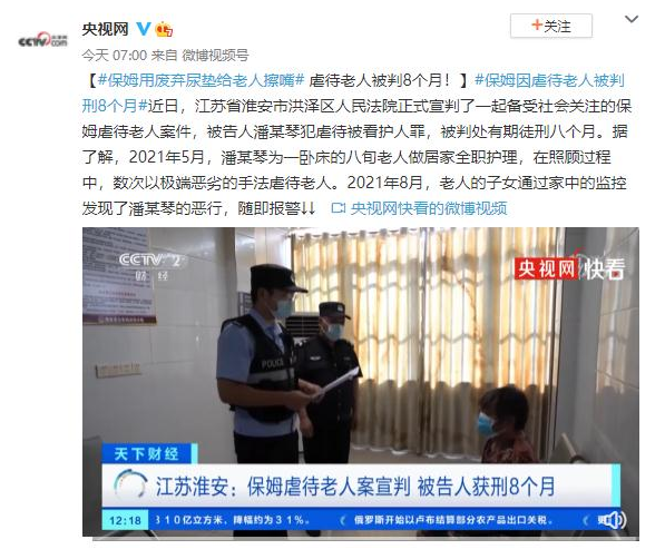 用废弃尿垫给老人擦嘴 保姆虐待老人被判8个月