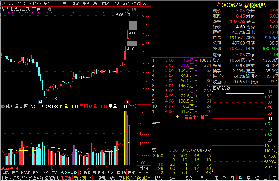 今天盘中,钒电池板块强势拉升攀钢钒钛率先涨停,实现3连板,金浦钛业、河钢股份等个股涨停。