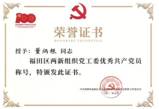 值建党一百周年之际,全国上下各级党委接连表彰了一批“两优一先”对象。集团一批共产党员和基层党组织,在企业发展实践中始终践行初心使命,团结带领全体员工奋力拼搏,充分发挥典型的示范表率作用,为企业的高质量发展作出了积极贡献,取得了显著成绩,分别受到了深圳市福田区两新组织党工委等各级党委的表彰。