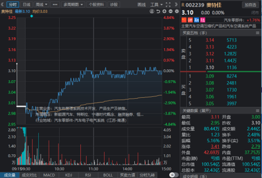 资料显示,奥特佳于2000年成立,2015年在深交所上市,是一家提供汽车的热管理整体解决方案的制造业企业。
