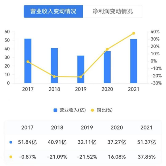 奥特佳在2021年报中指出,由于主要客户出货量高速增长、产品多元化、新能源热管理产品单价较高等多因素影响,公司收入增幅明显高于整车市场增幅,2021年的营业收入回到了之前的水平,首次突破50亿元。