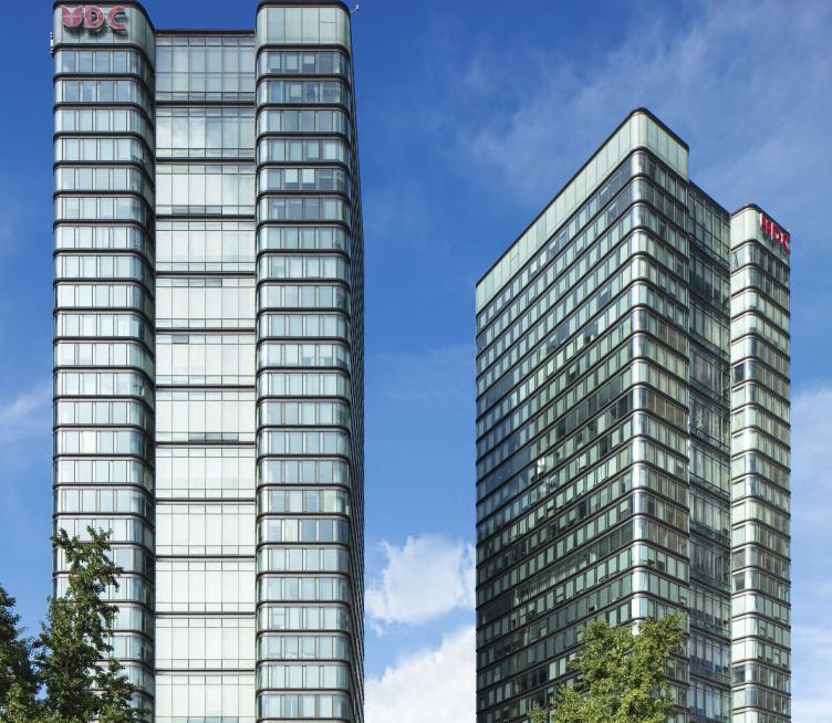UDC·时代大厦占地面积约1.5万平方米,总建筑面积约12万平方米,由两幢34层全玻璃幕墙双塔式H型建筑组成。时代大厦的建筑规划、室内设计、景观设计皆由世界五大建筑设计事务所之一的德国gmp全权担纲。众多高标准的配置,使其一举成为钱江新城国际化品质写字楼的标杆。