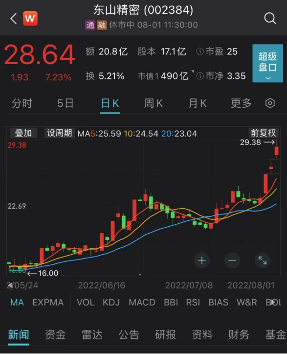 市场对人形机器人主线继续深挖。FPC板块爆发,东山精密上午上涨7.23%,近3日累计上涨21.41%。