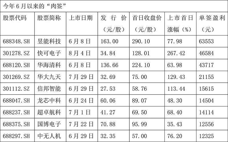 6月以来,新股“肉签”频出,一扫此前新股破发的阴霾。