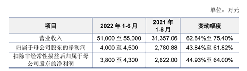 公司预计2022年上半年实现净利润4000万元至4500万元,同比增长43.84%至61.82%。