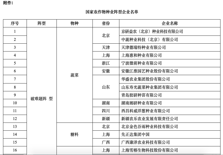 近日,农业农村部公布国家农作物种业阵型企业名单,加快打造种业振兴骨干力量。