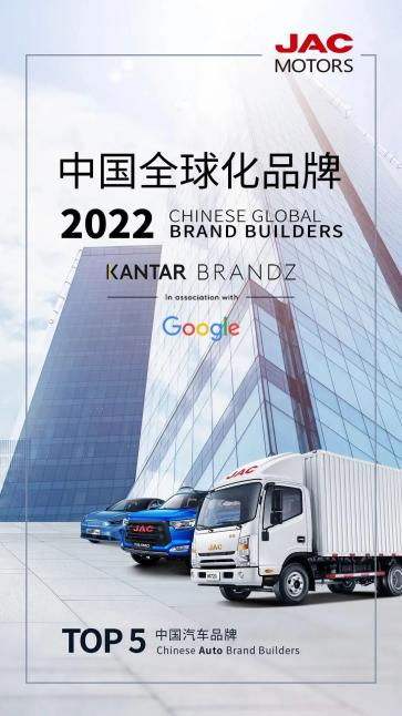 多年的国际化布局,使得江汽集团的海外影响力得到进一步提升。近年来,作为全球范围内提供数据、洞察的领先企业,世界知名咨询公司凯度(KANTAR)携手谷歌连续两年发布《BrandZ中国全球化品牌50强》报告。作为汽车类品牌,江汽集团已连续两年榜上有名;2021年,首次上榜位列中国全球化品牌第40位,中国汽车品牌第五位;2022年,江汽集团品牌势能稳中有升,品牌力成长率较2021年增长3%。