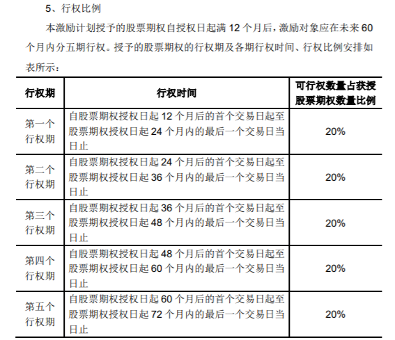 立讯精密针对上述业绩要求,设置了5个行权期。其中,立讯精密完成2023年的业绩要求,可行权的数量占获授股票期权数量的比例为20%。